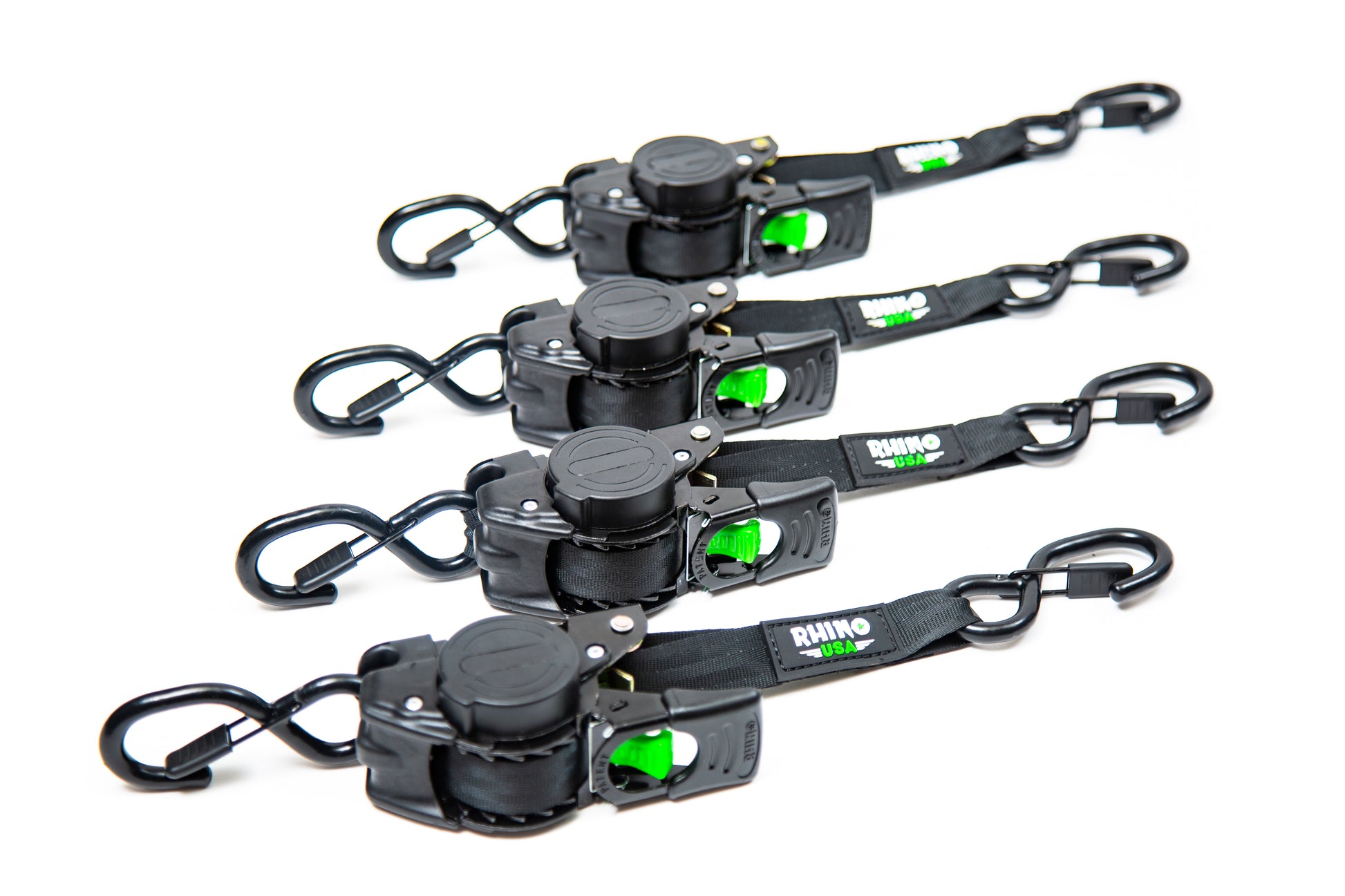TD-RSRE1X10-BLK-R: Rhino USA Retractable Ratchet Straps [1 in. x 10 ft., Black, Set of 4]